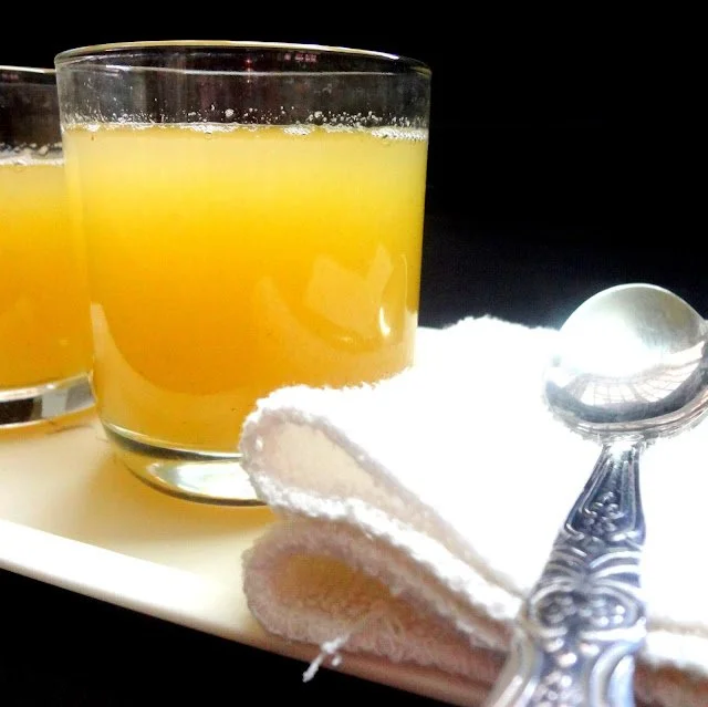 Aam Panna is a traditional Indian drink that's particularly popular in the northern and western parts of India during the hot summer months. This refreshing beverage is made from raw, green mangoes, sugar or jaggery, and an assortment of spices like cumin, fennel, pepper, and black salt. The green mangoes are boiled or roasted until soft, then the pulp is extracted and mixed with water, sweeteners, and spices. It's known for its tangy and sweet taste, which not only quenches thirst but also provides relief from the intense summer heat.