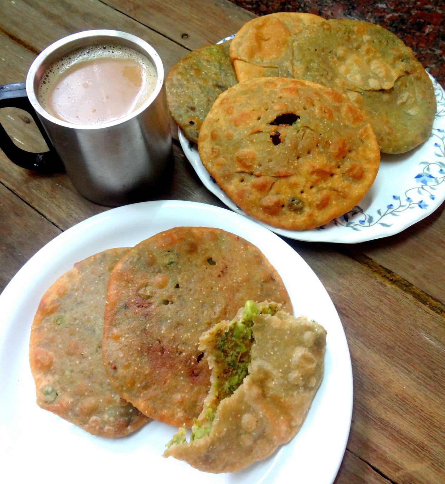 Green peas stuffed pooris or matar pooris are almost like the kachoris , except the filling is not too much and it is rolled out like regular pooris . Kachoris are much more fatter , fuller stuffed well , slow fried for that crunchy texture . These are excellent for eveniing tea and seriously addictive stuff .😁very tasty 😋.Ingredients :