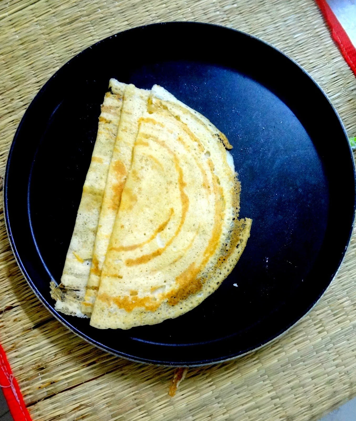 Excess batter in the centre can be scraped out to get a flat thin crispy dosa.
