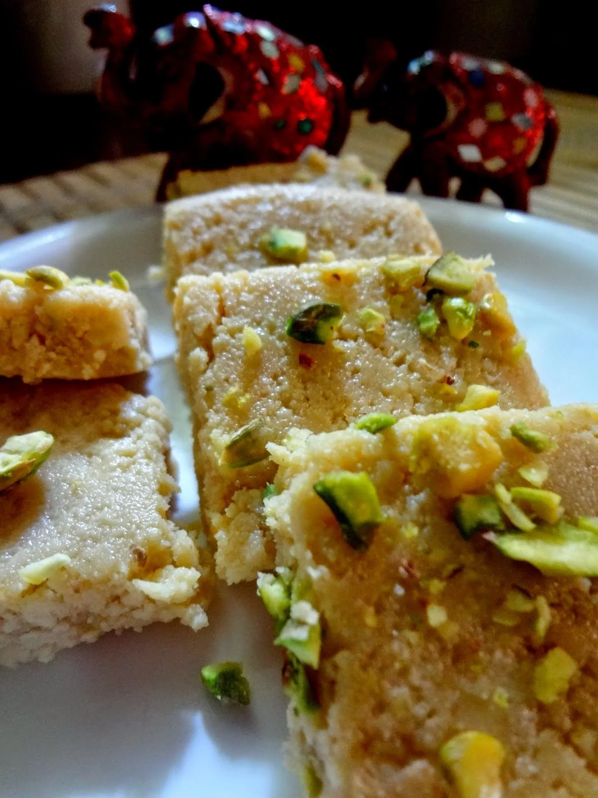 Kalakand , that delicious melt in the mouth milky creation so easy to make , once again I attempted , this time the good old method. Reducing milk to a very thick grainy consistency.