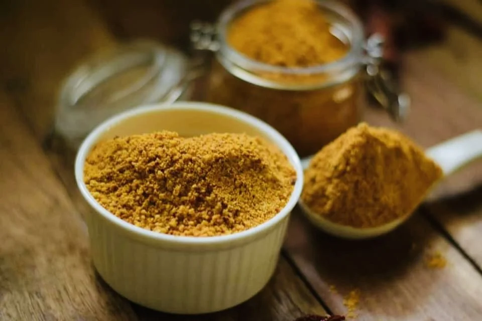 Add 1-2 tbsp of Kashmiri chili powder to the prepared podi for brilliance.