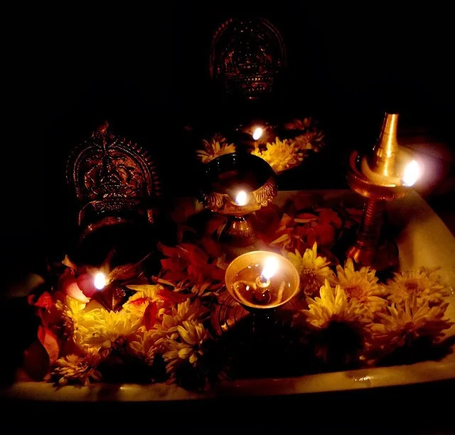 The lighting of lamps (Deepam) symbolizes the victory of light over darkness, knowledge over ignorance, and good over evil.