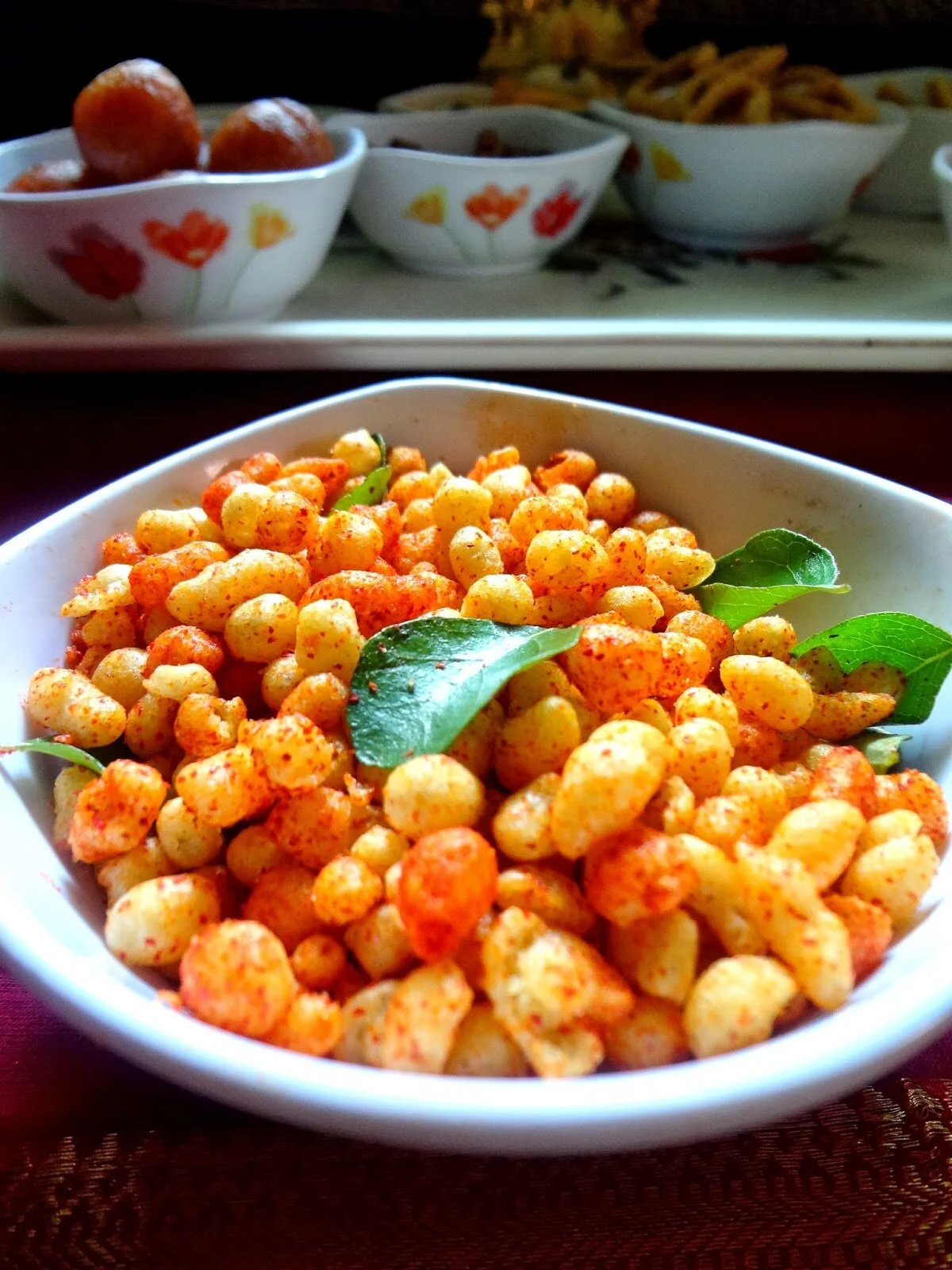 Khaara Boondi is a favorite snack to one and all, come Diwali and this is prepared feverishly to add to many other snacks specially Mixture/Chivda the Southern version of the North Indian mixture. By itself also this is a great snack to much , especially when spiced with chilli powder, curry leaves.