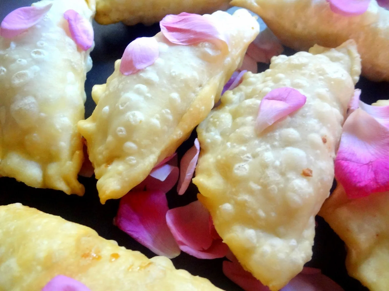 Gujiyas are basically deep fried stuffed pastry with dry fruits, sugar and nuts mixed with crumbled mava.