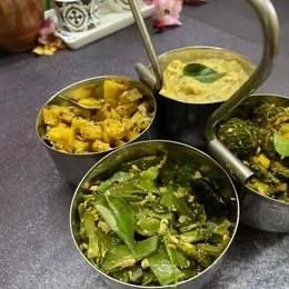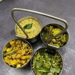 Basically we dont prepare each kari in the kadai individually, instead the cooked vegetable is set on the serving plate , individula podi, tempering and garnish added , mixed and kept . ( 3 to 4 kari ) like mixing up a salad .