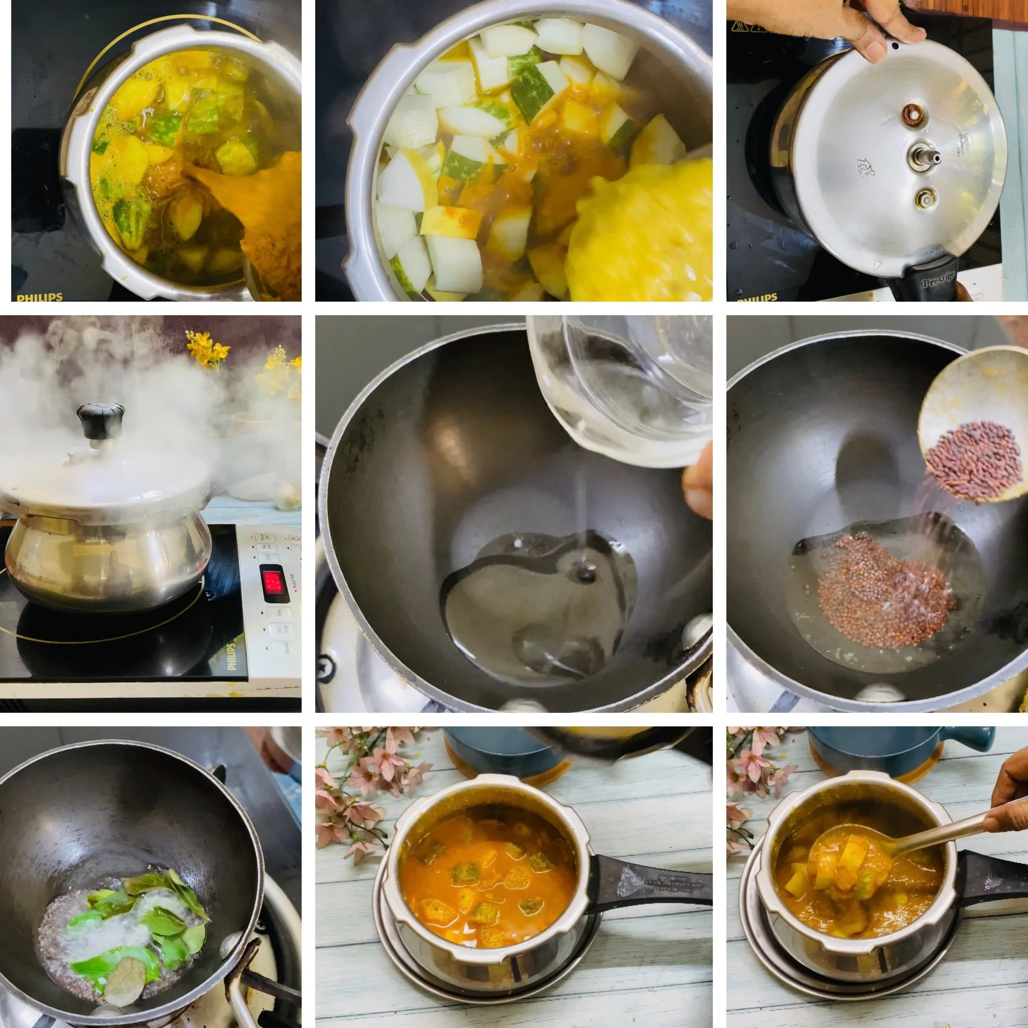 Open pressure cooker when cooled, sambar is ready , add tempering .