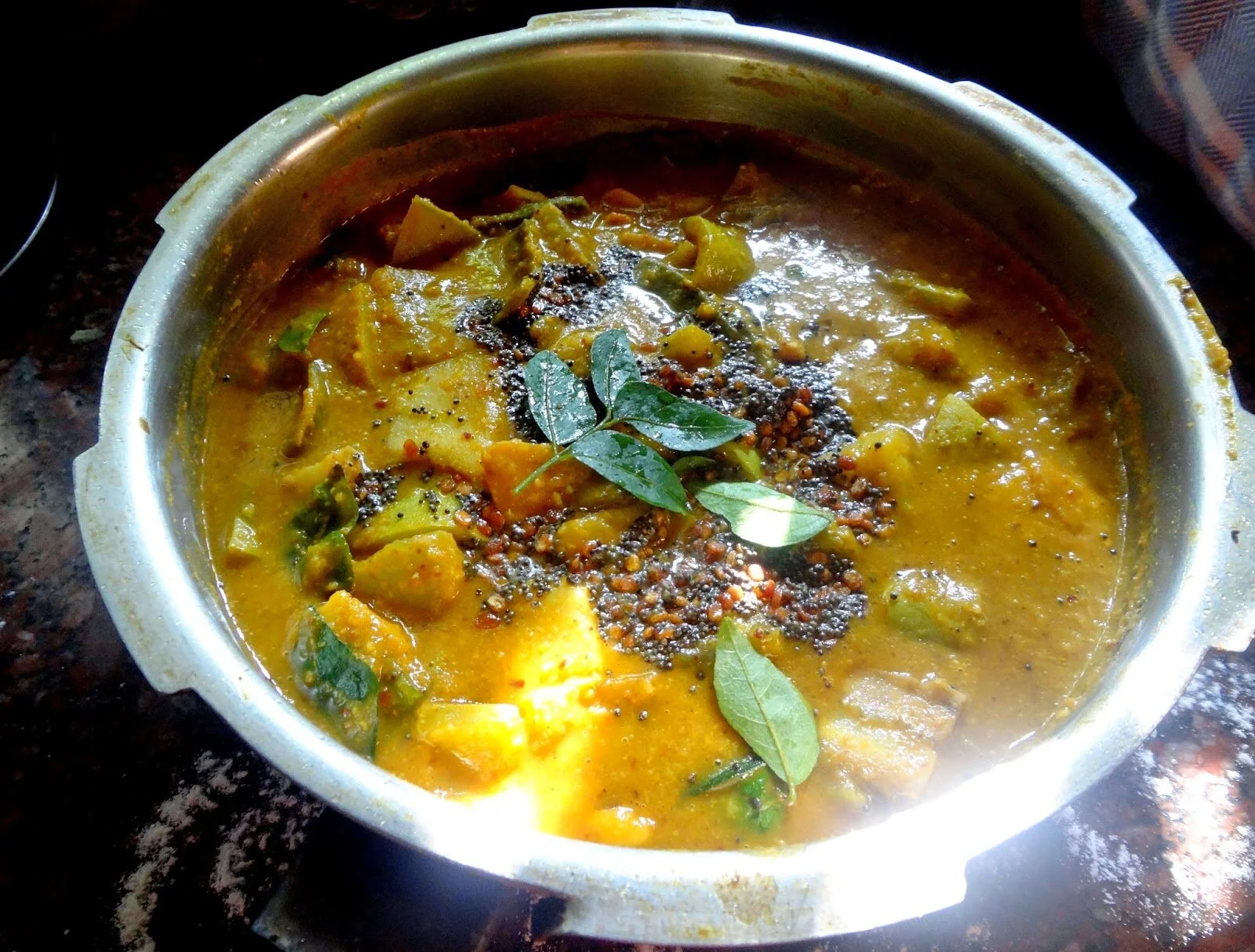 To add vegetables, choose any of the above, cook them soft, add in gravy prepared above with the cooked dal set aside mentioned in ingredients list above.