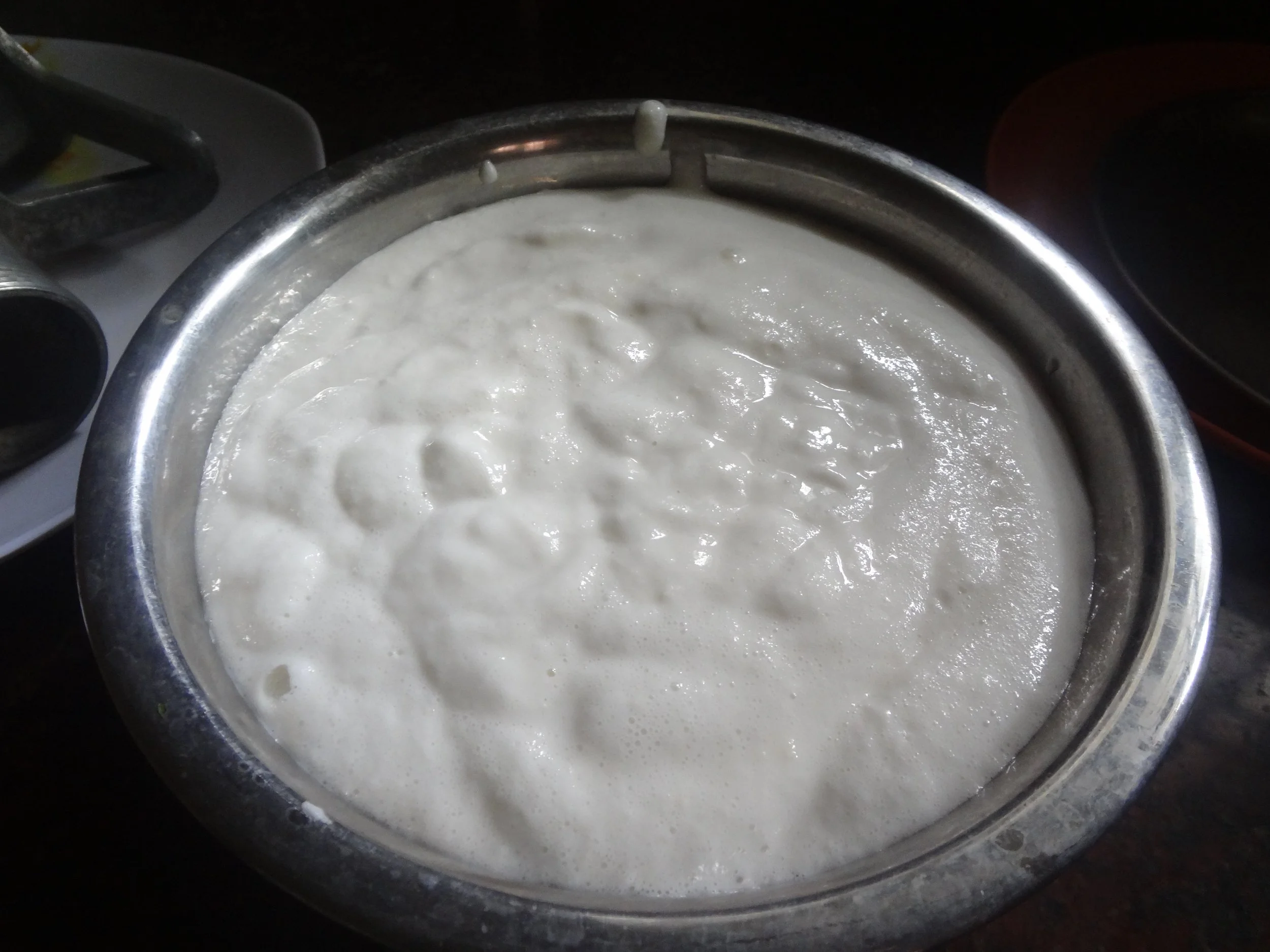 Keep to ferment overnight .In the morning just before preparing thatte idlis, add the soda, mix well.